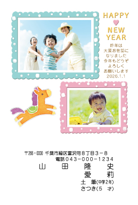 - キャラクター年賀はがきはプリンター写真タイプでの仕上がりとなります。